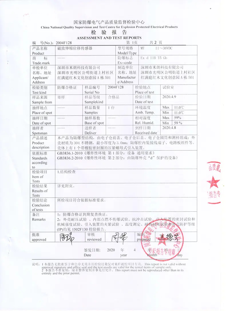 所属分类:位移传感器部分相关检验报告 发布时间: 2025-09-23 作者:湖北米朗科技股份有限公司武汉研发分公司