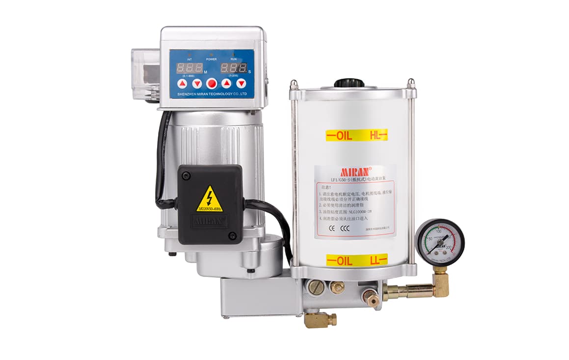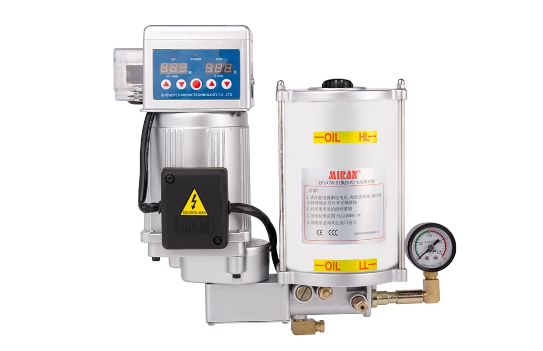 全自动油脂泵特点:供油和间歇时间同主机电脑控制设定。油箱容量有1/2/3/4L,吐出量50ml/ min,视油箱有油位计。全自动油脂泵是用交流电源驱动的润滑脂泵,全自动油脂泵通过电机和机械传动将润滑脂不断输出,该泵可用于抵抗式分配器将润滑油脂注入所需润滑点,该泵体积小,输出流量大,全自动油脂泵广泛用于轻工/锻压自动化等机械设备的集中润滑系统中。
