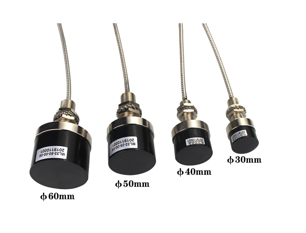在制作过程中,探头头部体一般采用耐高温PPS工程塑料,通过“二次注塑”成型将线圈密封其中。使探头在恶劣的环境中能可靠工作。由于头部体线圈直径决定传感器系统的线性量程,因此我们通常用头部体外部直径来分类和表征各型号探头,一般情况下传感器系统的线性量程大致是探头头部直径的1/2~1/4倍。ML33系列传感器探头见图所示(标准型):