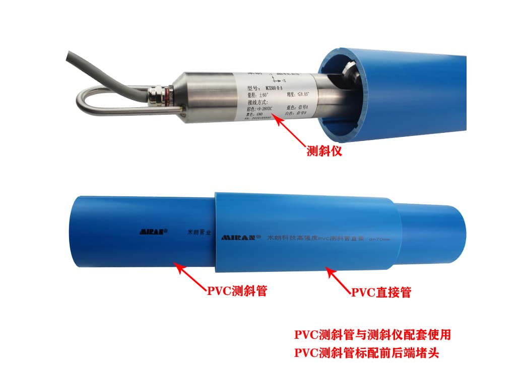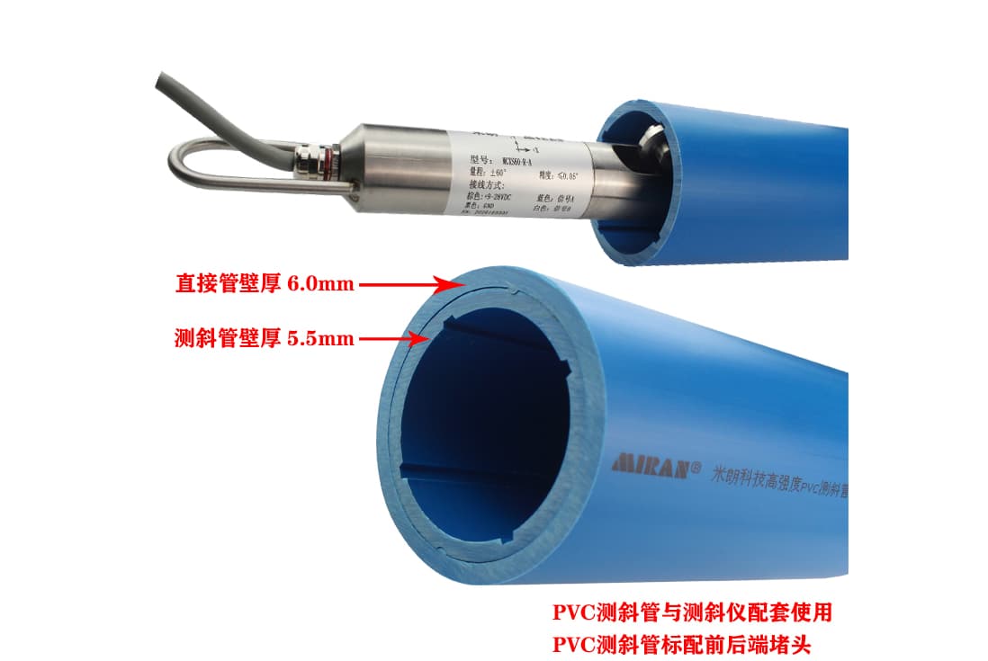 PVC测斜管可与智能固定式测斜仪配套使用,用以观测堤坝、边坡、基坑,铁路等相对水平的双轴倾斜角度,配合自动实时监测系统也可适合于滑坡地质活动的长期监测等。测斜管与测斜管接头采用凹凸槽连接,并用自攻螺丝固定,对接更牢靠,密封性能佳,使用更方便。测斜管内有供测斜仪探头定向的90°间隔的导槽,以保证坚固、耐环境腐蚀及测斜管导槽无扭旋等特点。