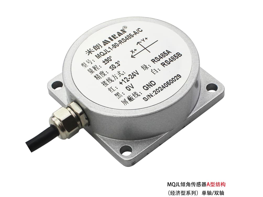 MQJL倾角传感器经济型系列采用抗干扰平台设计,集成新型微机械传感单元,宽温工作性能,长期工作稳定可靠。本产品采用非接触式原理测量物体的倾斜角度,通过内部的微机械单元测量地球引力所产生的分量来解算出实时倾斜角度,安装简单方便,只需固定在被测动作的物体上,不需要固定轴与转动轴,多种安装方式,满足客户测量需求,是工程机械车辆,农用机械,等工业设备的理想配件。