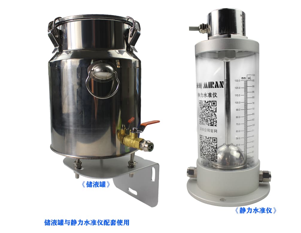 储液罐需与磁致伸缩式静力水准仪配套使用,储液罐为201不锈钢材质,美观大方,容量5L、8L、11L可供选择,也可接受非标定制。