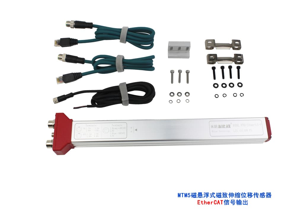 MTM5磁悬浮位移传感器的原理是利用两个不同磁场相交时产生一个应变脉冲信号,然后计算这个信号被探测所需的时间周期,从而换算出准确的位置。这两个磁场一个来自磁环中的永磁铁,另一个来自传感器电子仓中的电子部件产生的激励脉冲。激励脉冲沿传感器内用磁致伸缩材料制造的波导丝以声速运行。当与磁环中的永磁场相交时,由于磁致伸缩现象,波导丝产生的机械振动形成一个应变脉冲。应变脉冲很快便被电子仓中的感测电路探测到。从产生激励脉冲的一刻到应变脉冲被探测到总的时间乘以固定的声速,我们便能准确的计算出磁铁的位置变化。这个过程是连续不断的,所以每当磁环位置改变时,新的位置会被迅速测量出来。由于输出信号是真正的位置值,而不是比例的或需要再放大处理的信号,所以不存在信号漂移或变值的情况,更不必像其他传感器那样需要定期重标。