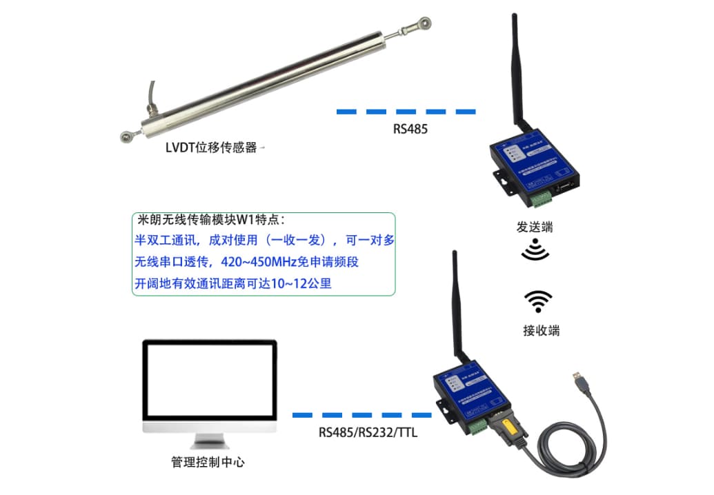 产品名称:无线传输模块与LVDT位移传感器所远程连接