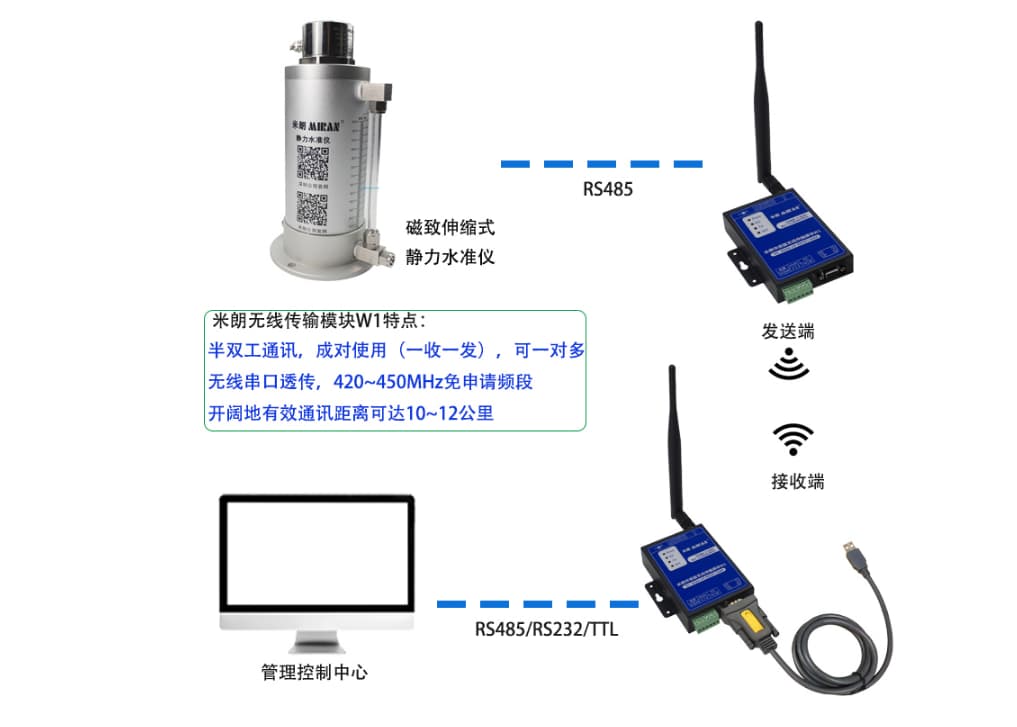 产品型号:与磁致伸缩式静力水准仪实现无线连接