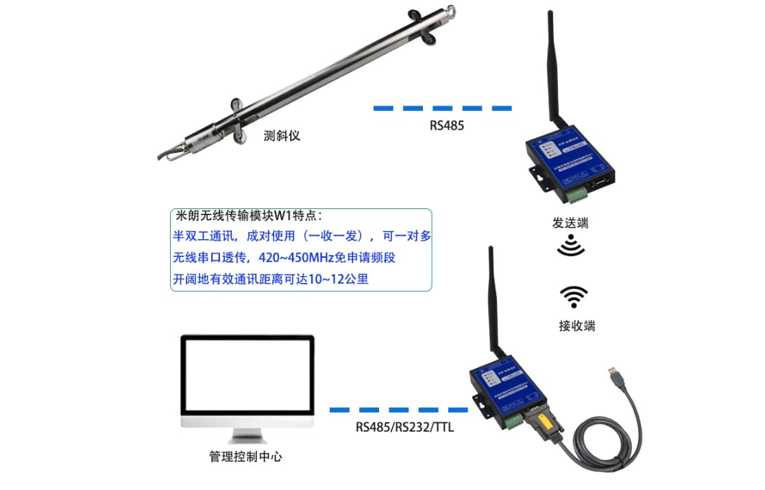 产品名称:无线传输模块与测斜仪所远程连接