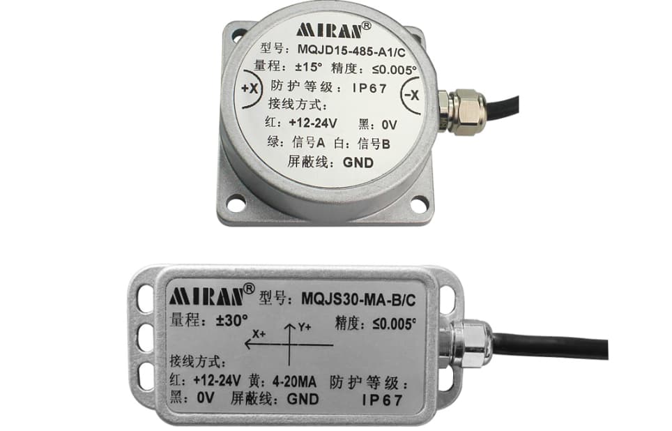 高精度数字输出型倾角传感器,米朗科技公司推出的一款高精度单轴倾角传感器,分辨率可达0.01°,高精度数字输出型倾角传感器,精密倾角仪内部采用高分辨力差分数模转换器,内置自动温度补偿和滤波算法,减小了因环境变化引起的误差。测量原理是把静态重力场的变化转换成倾角变化,通过数字方式或者模拟方式直接输出当前的姿态角,高精度数字输出型倾角传感器,精密倾角仪外壳采用锌合金压铸成型,机械强度高,温度膨胀系数小,密封性能高,安装方便、使用简单、体积小、抗外界电磁干扰、承受振动冲击能力强,是测量测绘、高层建筑,公路桥梁,工业自动化、工程机械等行业倾角测量的推荐选择!