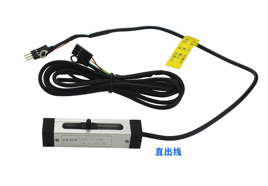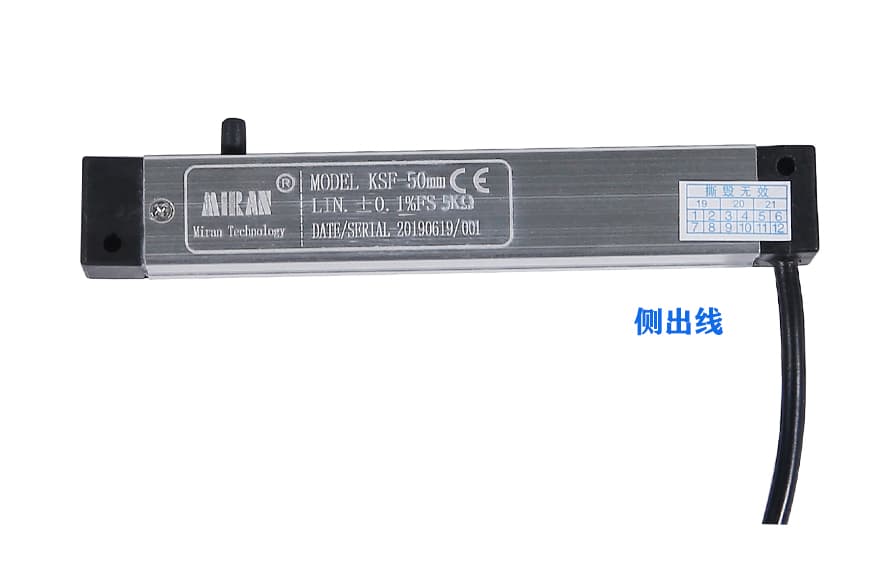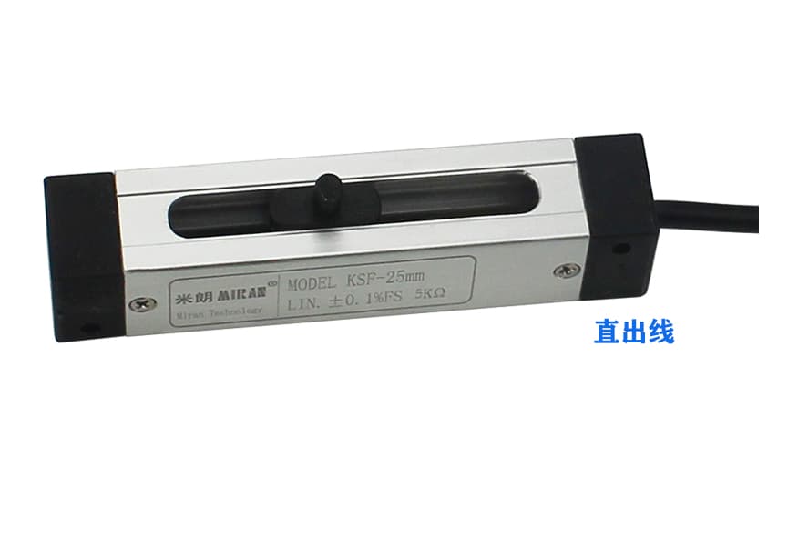 KSF微型滑块式位移传感器(别名:电子尺,电阻尺,电位器,位移传感器)原理:电位计原理,所有传感器为位置测量型,用于调节系统(控制系统)和测量系统中,对位移和长度进行直接测量,输出直流电压信号,也可以通过内置或者外置的V/A变送模块讲信号转换成标准的0-5V、0-10V或者4-20mA直流信号,也可以远距离传输控制要求。 KSF微型滑块式位移传感器(别名:电子尺,电阻尺,电位器,位移传感器)输出位移变化:0-100%给定输入工作电压(随位移变化而变化)。