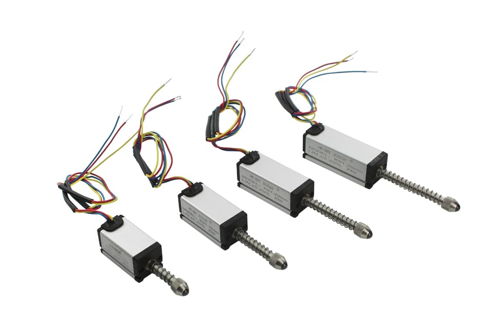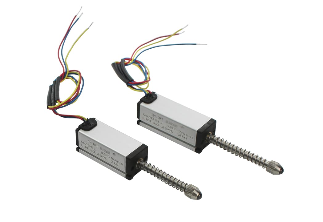 KST自复位式位移传感器(别名:电阻尺,电子尺,电位器,位移传感器)原理:电位计原理,所有传感器为位置测量型,用于调节系统(控制系统)和测量系统中,对位移和长度进行直接测量,输出直流电压信号,也可以通过内置或者外置的V/A变送模块将信号转换成标准的0-5V、0-10V或者4-20mA直流信号,也可以远距离传输控制要求。KST自复位式位移传感器(别名:电阻尺,电子尺,电位器,位移传感器)输出位移变化:0-100%给定输入工作电压(随位移变化而变化)。