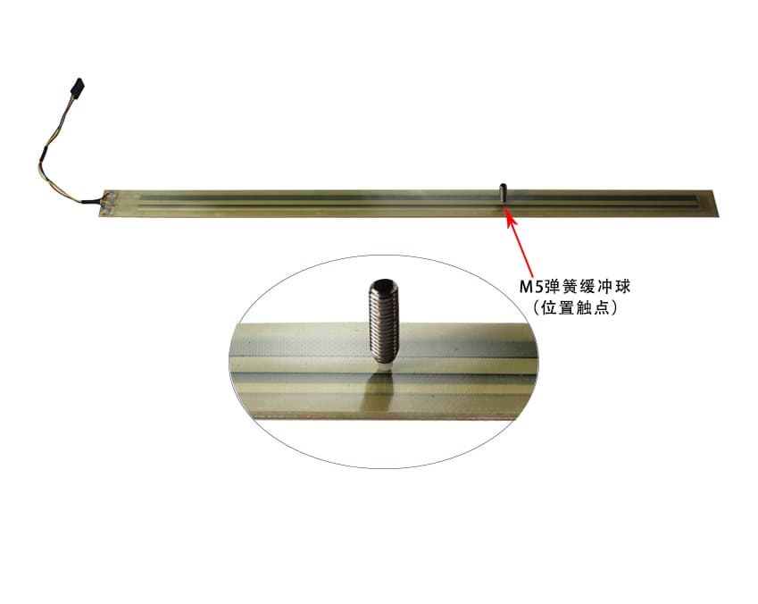 LEP无电刷防水防尘位移传感器是由两个碳膜基板构成,两者中间中空隔开。碳膜基板上采用丝网印刷先进技术及工艺处理的电位计导电材料,基片正上方的采集碳膜箔片上印有低阻值的采集传感材料;外部位置触点施加的外力让采集膜片传感材料与电位计导电材料相接触,从而产生实时位移信号。专用的丝网印刷涂料以及连续的几道光刻机线性修刻工序,从而能保证线性精度优异、高寿命的传感器。