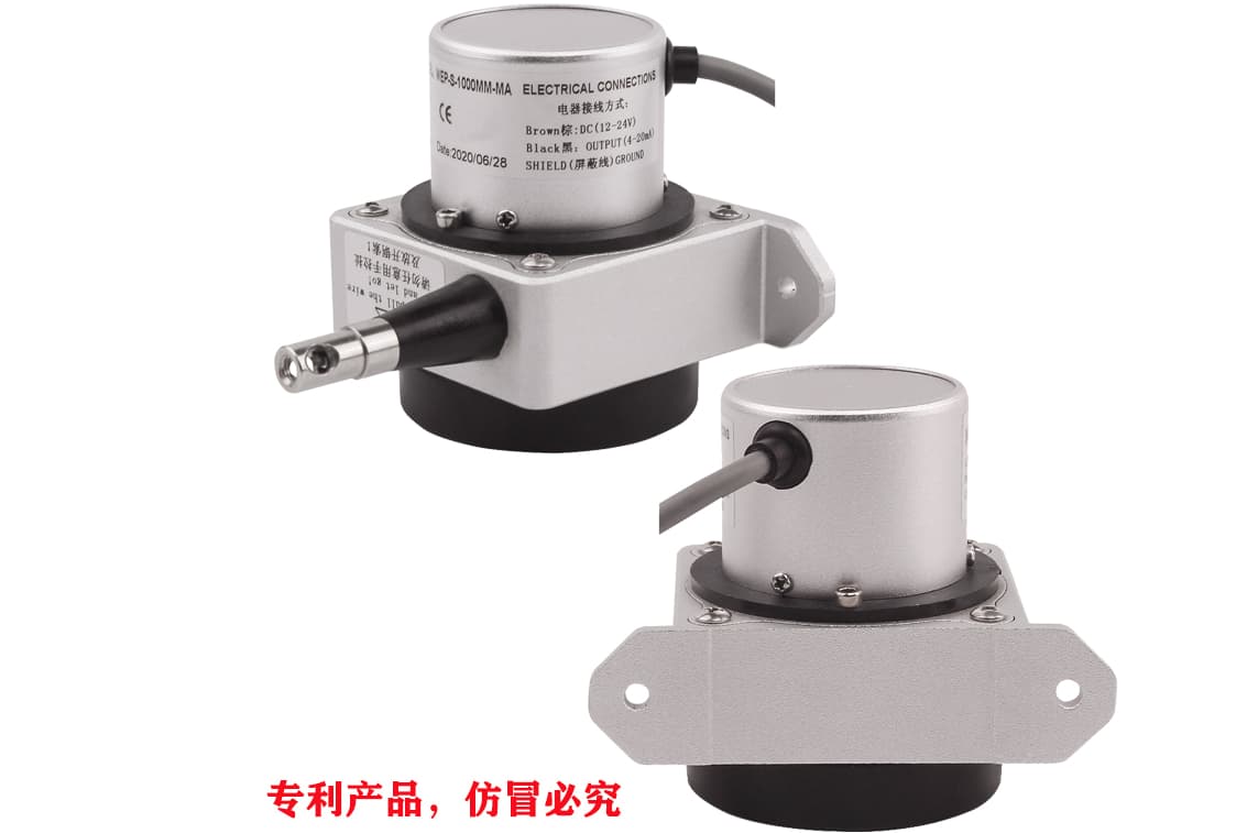 WEP-S拉线位移传感器,又称拉绳编码器,拉绳尺,拉线尺,拉线编码器,拉绳位移传感器,是直线位移传感器在结构上的精巧集成,充分结合了角度传感器和直线位移传感器的优点,成为一款结构紧凑、测量行程长、安装空间尺寸小、具有高精度测量的优良传感器。WEP-S拉线位移传感器系列产品具有很大的选择空间,行程从100mm至1000mm不等, 具有模拟电流信号mA:4-20mA,模拟电压信号V1:0-5V,V2:0-10V,脉冲信号P:A、B、Z相数字输出,RS485数字信号输出。满足大行程、高精度各种信号需求。