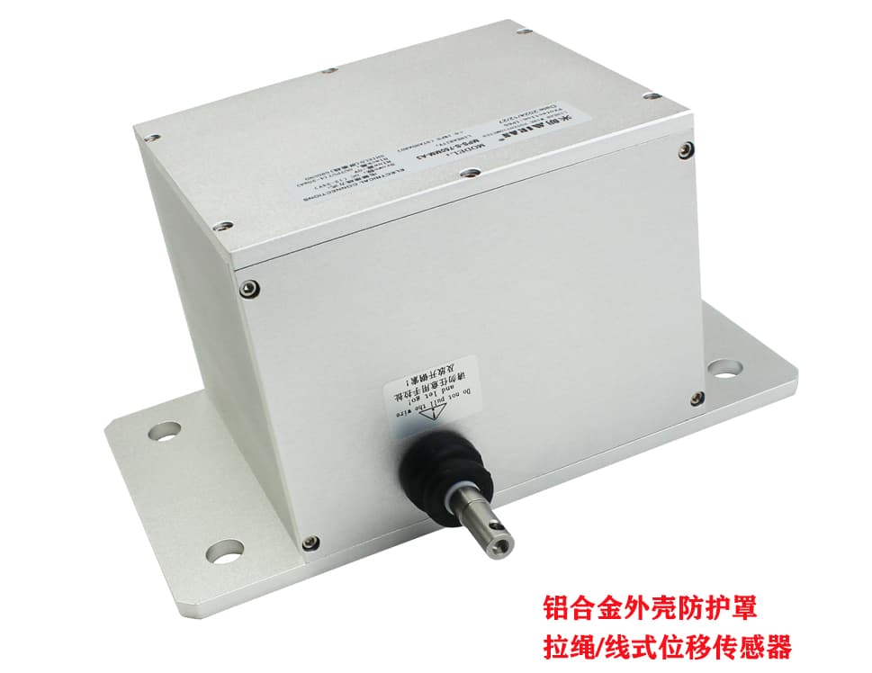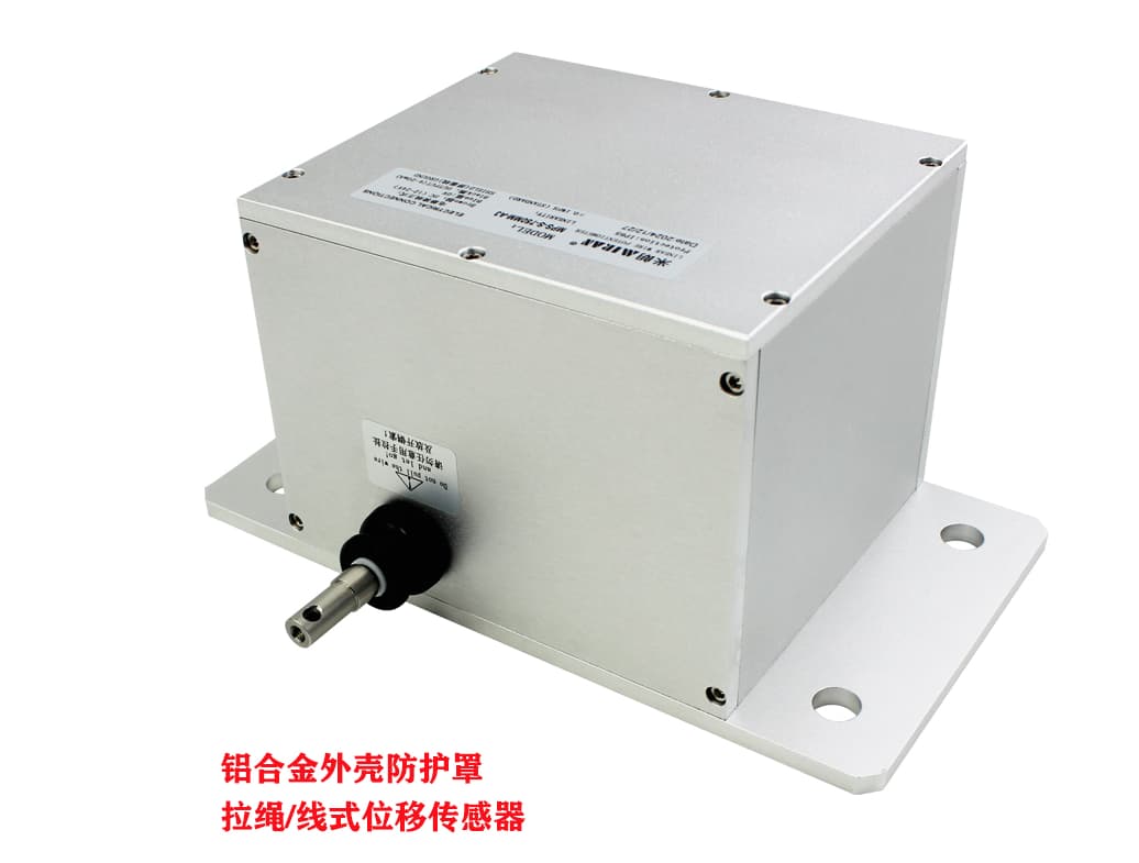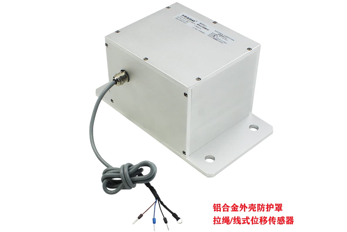 一、铝合金防护罩拉线位移传感器,又称拉线尺,拉线编码器,拉绳位移传感器,是直线位移传感器在结构上的精巧集成,充分结合了角度传感器和直线位移传感器的优点,成为一款结构紧凑、测量行程长、安装空间尺寸小、具有高精度测量的优良传感器。铝合金防护罩拉绳位移传感器系列产品具有很大的选择空间,行程从1000mm至4000mm不等, 具有模拟电流信号mA:4-20mA,模拟电压信号V1:0-5V,V2:0-10V和脉冲信号P:A、B、Z相数字输出,RS485数字信号输出。满足大行程、高精度各种信号需求。