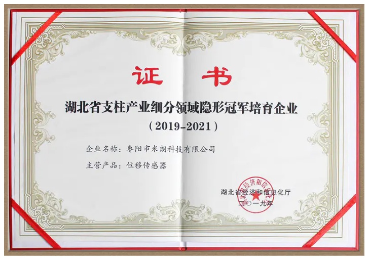 湖北省支柱产业细分领域隐形冠军证书