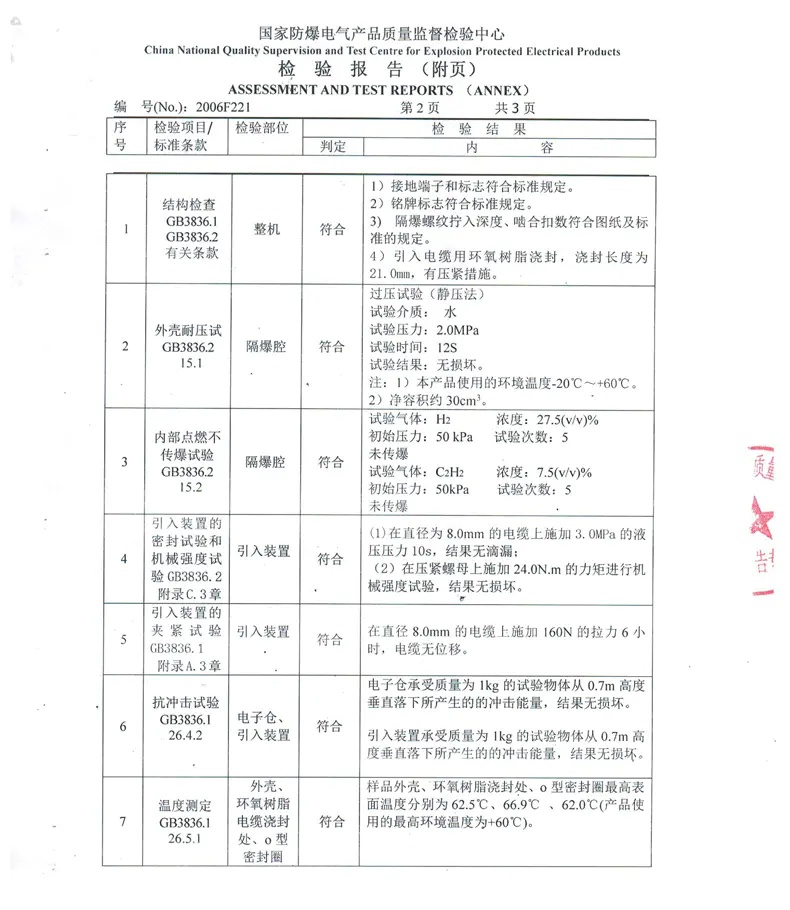 防爆型磁致伸缩位移/液位传感器检验报告